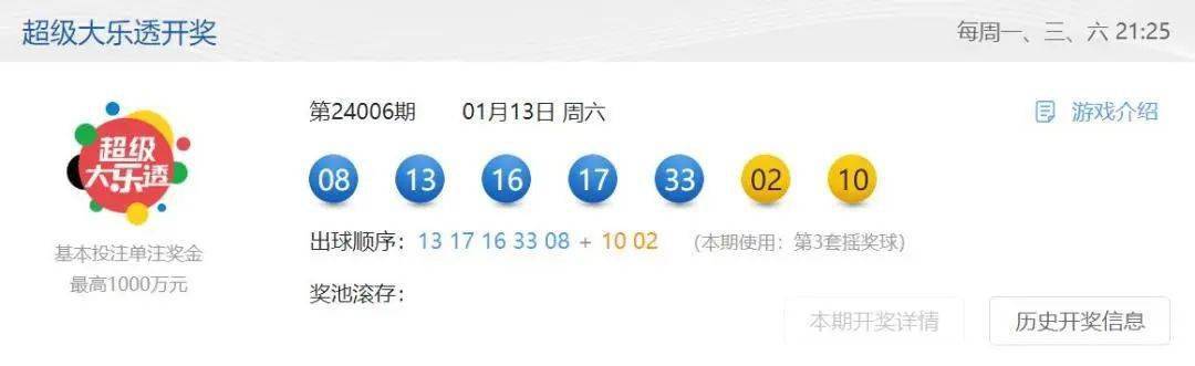 六合彩,六合彩开奖结果,六合彩预测,六合彩走势图,六合彩投注,六合彩技巧,六合彩结果今期,六合彩玩法1月13日,体彩超级大乐透第24006期前区开出号码“08、13、16、17、33”,后区开出号码“02、10”。当期全国销量为3.17亿元,为国家筹集彩票公益金1.14亿元。