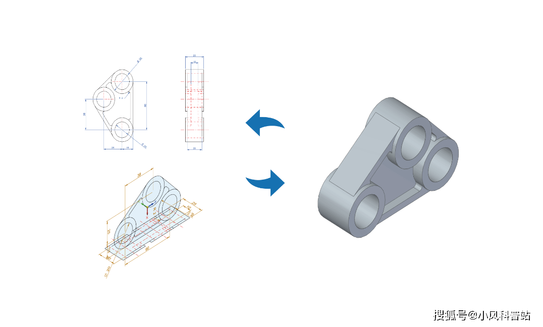 新手还需要掌握一些基础的建模技巧,比如在零件设计中,设计师经常会用到浩辰3D设计软件中的2D草图和3D草图,并通过草图和实体特征来生成零件,最后借助实体零件来生成各视图投影及尺寸标注。先说基础特征的创建,就可以打开浩辰3D设计软件,选取【零件模板】来新建一个零件文件,在俯视基准面上创建草图,绘制直线段及圆弧,添加约束关系并标注尺寸。这时候就可以退出草图界面,使用其他命令,进行多实体的分割与设计。